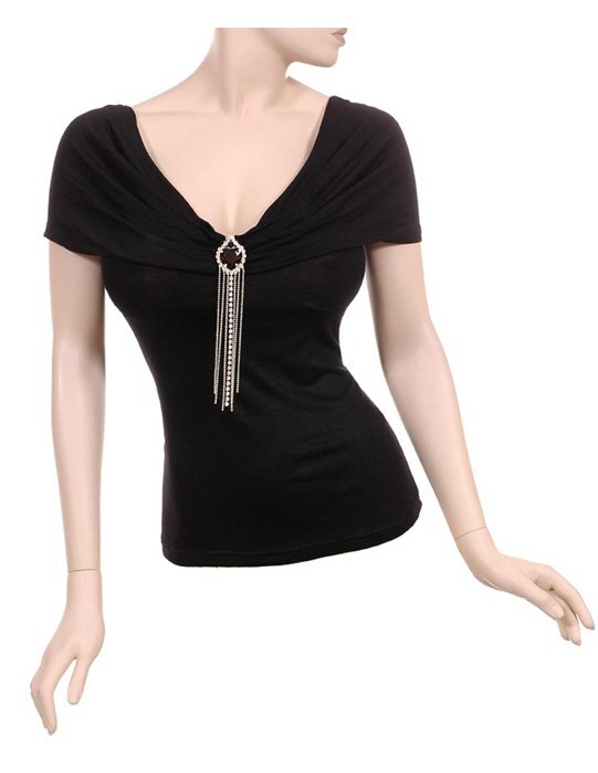 Cute V Neck with lacy shoulders and cinched for hugging, slimming look