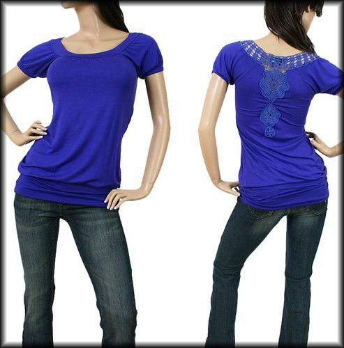 Cute top with scoop neck and embroidered back.