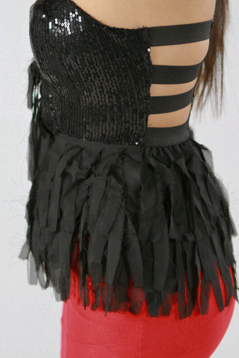 Cute little ruffle black strap top. Slim Fit. Zipper Back.